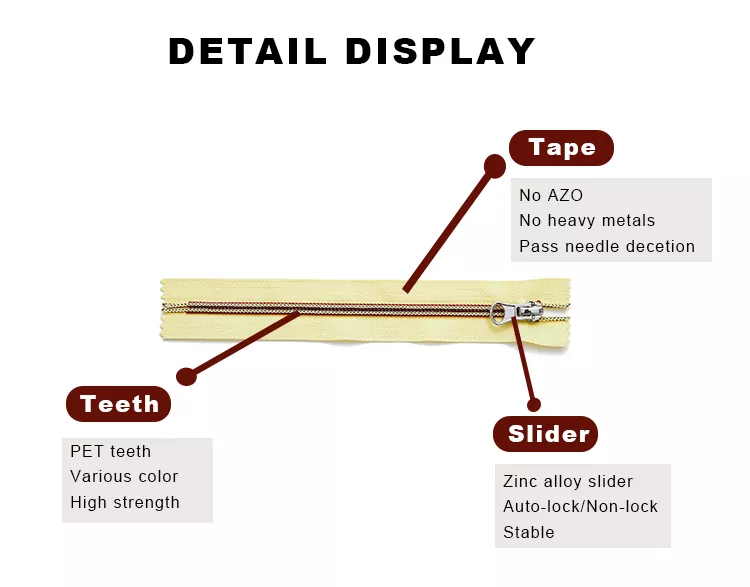 すべてのナイロン コーティング ジッパーは厳選された高級原材料から作られており、優れたパフォーマンスと耐久性を保証します。輸入された高強度ナイロンモノフィラメントと丈夫なポリエステルジッパーテープを使用し、頻繁に使用してもジッパーが滑らかで安全で柔軟性を保ちます。